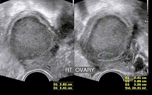 - Sonography: Sonography can confirm the disease, its extent & severity. In uterus , changes may be localized or diffuse.Its presence in ovaries lead to chocolate cyst formation. Endometriotic nodules in pouch of douglas or along walls of uterus with free fluid is a sign of advanced disease.